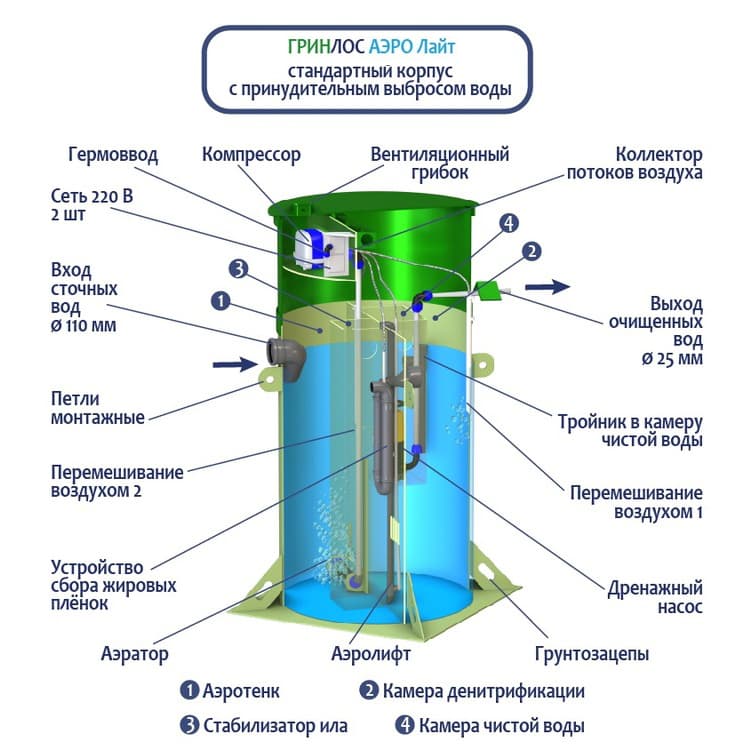 Принцип работы септиков ГРИНЛОС Аэро Лайт