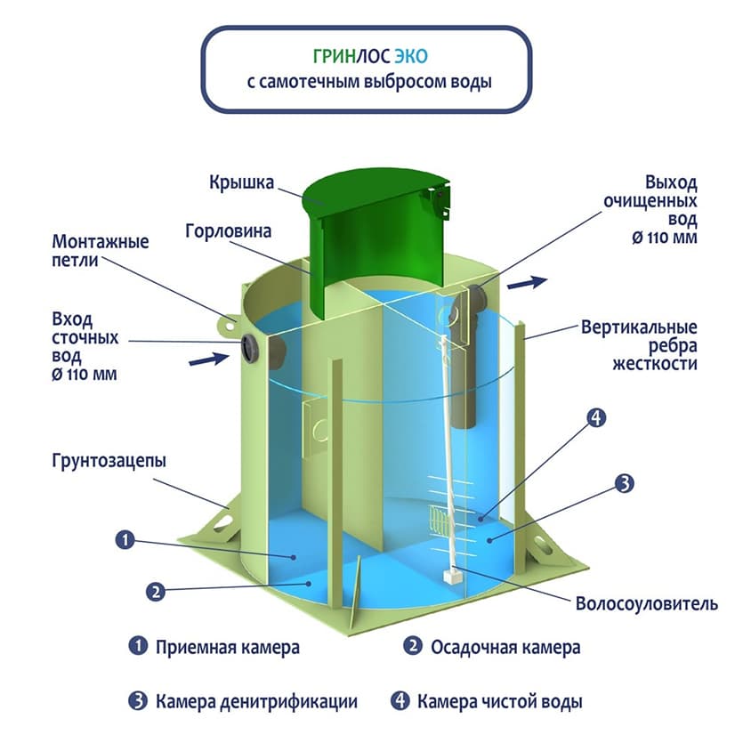 без откачки энергонезависимые накопительные автономные принудительные самотечныеПреимущества септика ГРИНЛОС Эко над конкурентами
