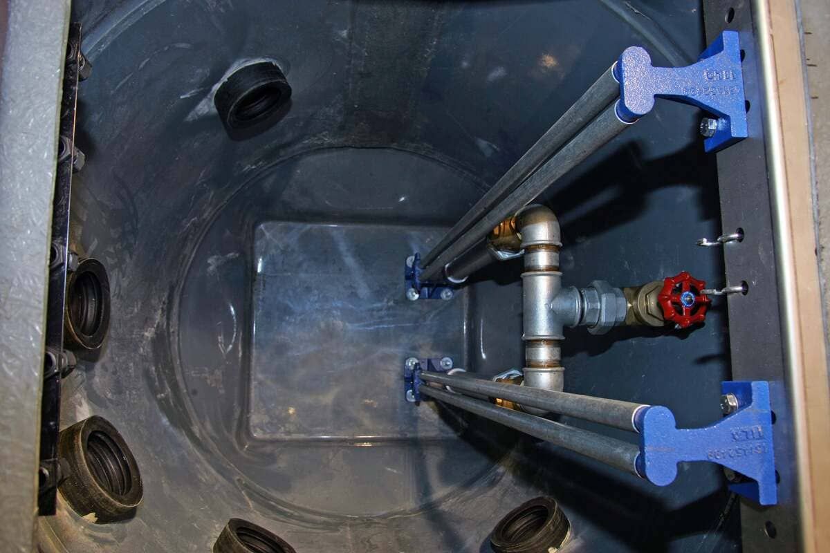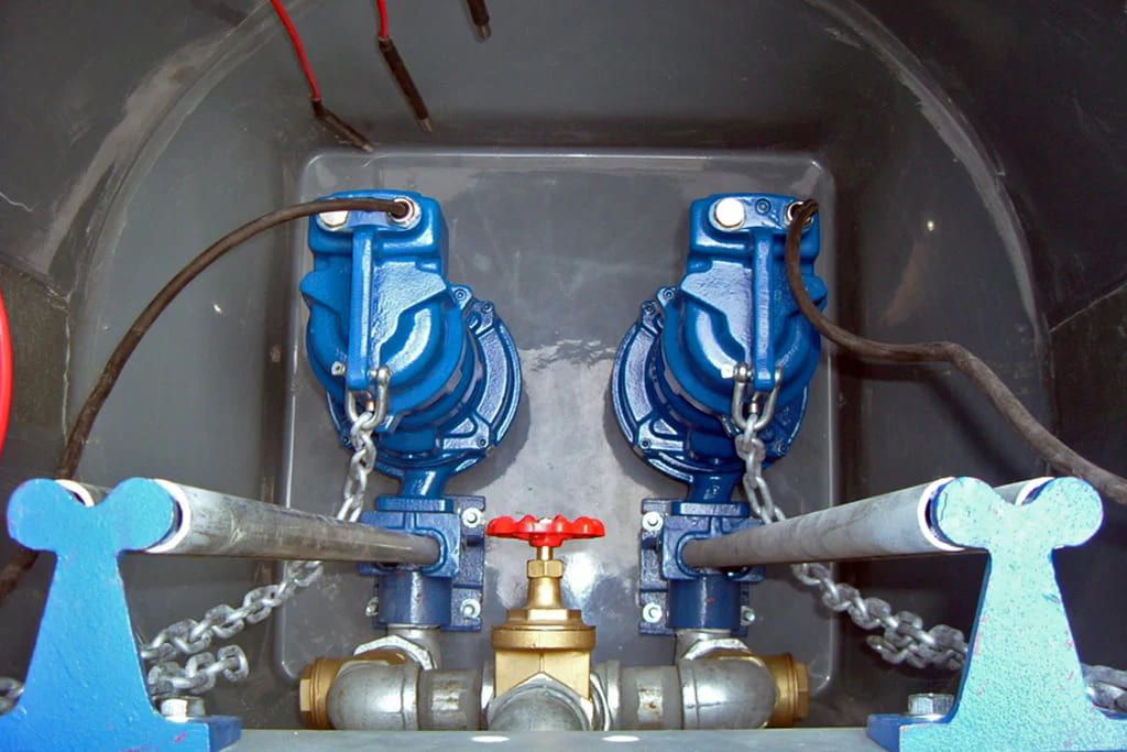 - визуальный осмотр состояния запорной арматуры, насосов, проверка показателей панели управления. Если есть показатели ненормальной работы насоса, посторонние шумы или вибрации, агрегат извлекают из емкости, осматривают, промывают и проверяют