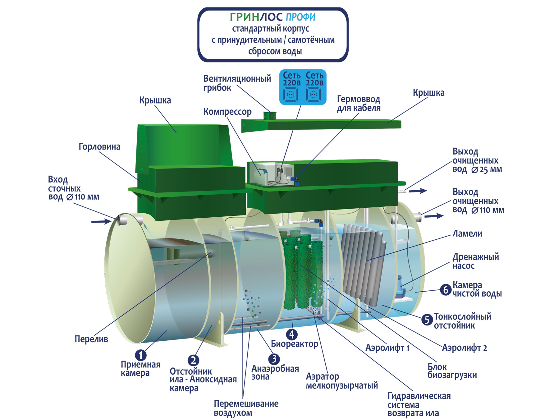 Принцип работы септиков ГРИНЛОС Профи