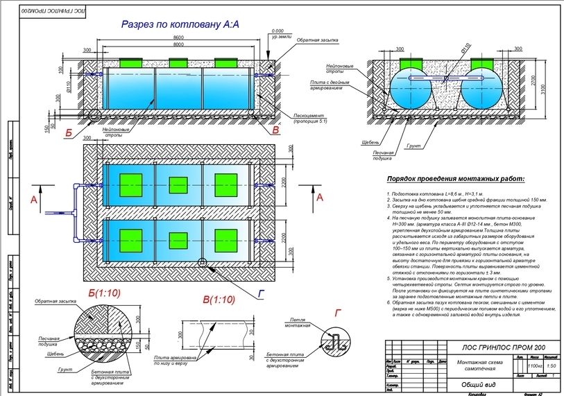 Монтаж септика ГРИНЛОС Пром 200